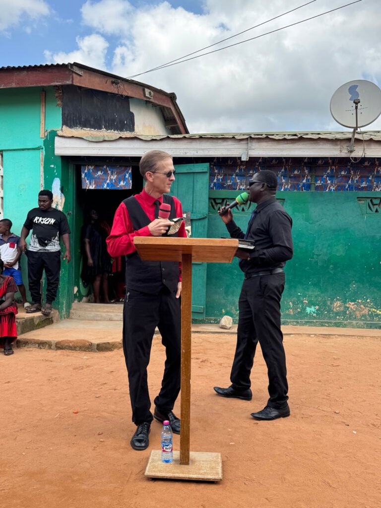 On October 25th, I had the privilege to preach the funeral of a dear young pastor’s wife. I was both honored and humbled to preach the funeral in the open air between the chief’s palace and a bar. There must have been nearly 1,000 souls in attendance. I thank God for the ability to preach in the hot sun through a translator the pure gospel of the grace of God. The next morning, as I preached a special service for this pastor’s church, I began to get dizzy and almost passed out. My wife and some men from the church got me several coconuts to drink (God’s natural hydration in the absence of Gatorade). Praise the Lord,I was able to stand again and preach the Word of God.